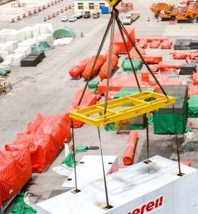 在操作中,裝卸團隊采用四點吊裝法,每個吊點配置卸扣與專用集裝箱吊具。卸扣均經過磁粉探傷,并標注最大工作載荷(WLL)標識。操作人員會根據設備重心位置動態調整鋼絲繩長度,確保受力均勻。特別在浪高超過1.5米時,還會增加防滑移鎖緊裝置,通過液壓張緊系統實時監控各鋼絲繩張力。